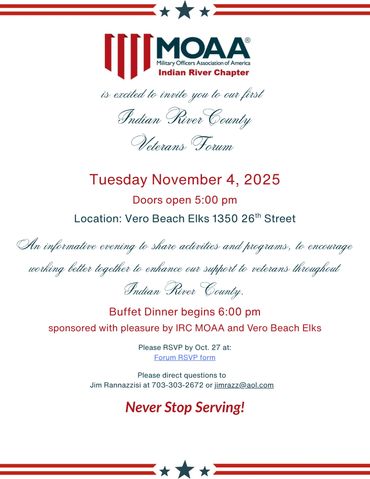 Indian River County Chapter, in keeping with national and state MOAA bylaws and requirements, is politically nonpartisan. However, our Legislative Affairs Chairperson makes a deliberate effort, per the responsibility of the role, to inform membership of candidates’ positions.